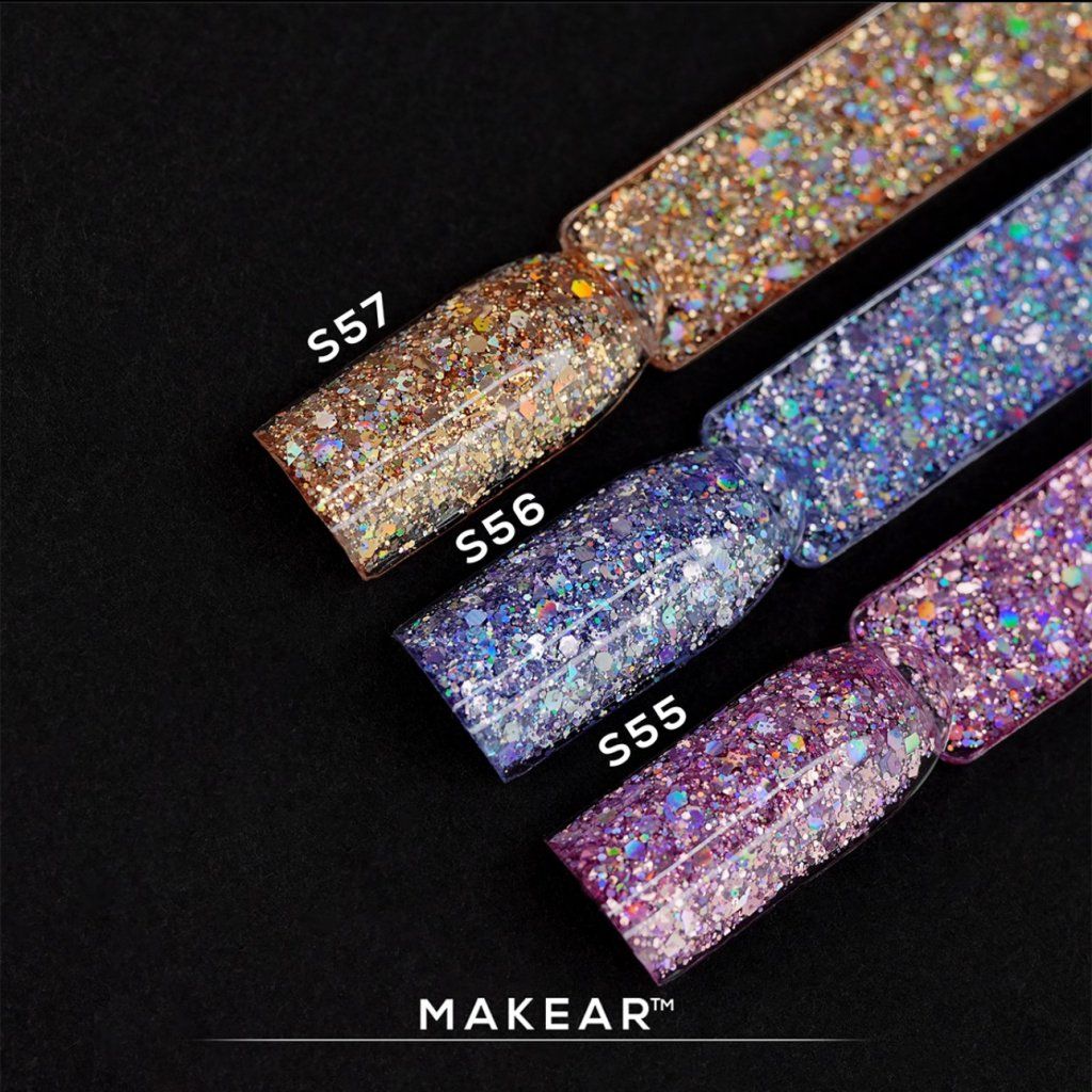 - barevný gel lak s obsahem třpytek a holografické fólie