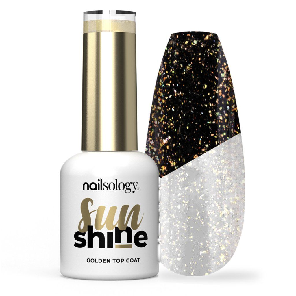 Golden Top Coat Sunshine Clavier Nailsology 8ml - závěrečný top coat s obsahem zlatých třpytek.