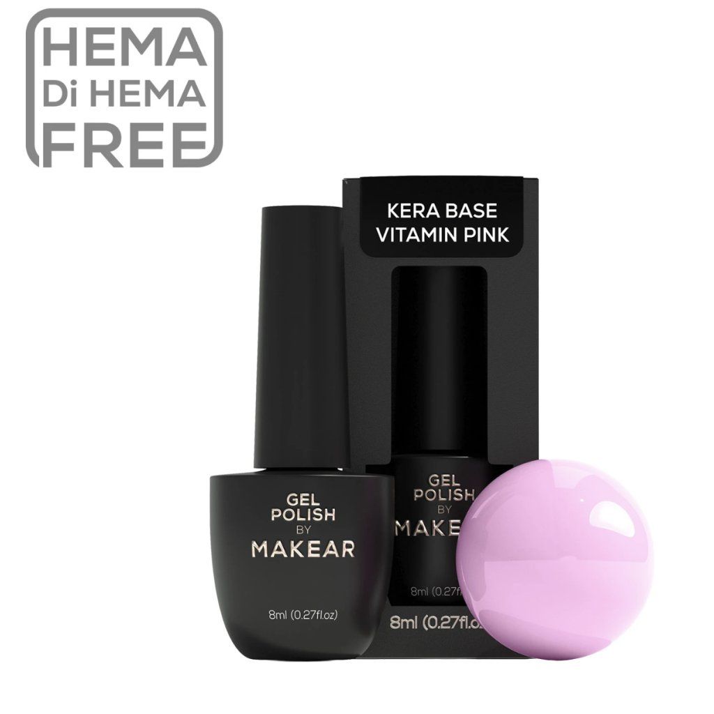 Kera Base Vitamin Color od Makear je inovativní báze s obsahem keratinu a vitamínu E, určená speciálně pro tenké, slabé a lámavé nehty. Tato báze 2v1 kombinuje funkci zpevňujícího podkladu s jemným pigmentem, čímž vytváří přirozený vzhled manikúry se 75–80% krytím. Složení zajišťuje stabilitu, odolnost vůči mechanickému poškození a výrazně urychluje práci v salonu.